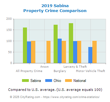 average by 48.2% and the city property crime rate in Sabina was higher than the