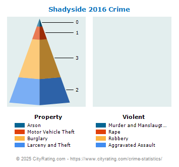 In 2016 the city violent crime rate in Shadyside was lower than the