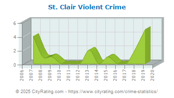 The city violent crime rate for St. Clair Township in 2019 was lower than the