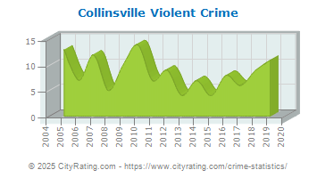 The city violent crime rate for Collinsville in 2019 was lower than the