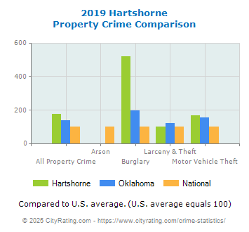 average by 59.03% and the city property crime rate in Hartshorne was higher than the