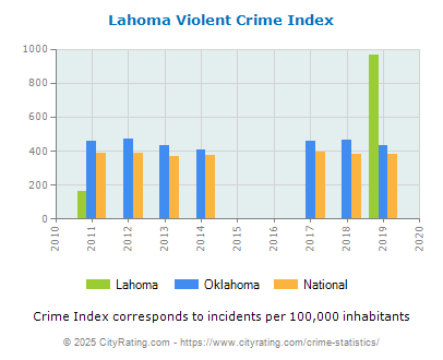 The city violent crime rate for Lahoma in 2019 was higher than the