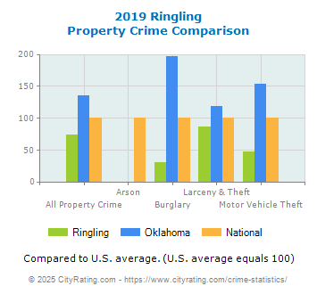 average by 45.43% and the city property crime rate in Ringling was lower than the