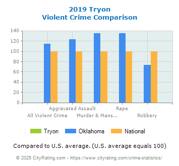 crime rate data displayed above was generated from the trends and crime data available from previous years of actual reported data. In this case, the Tryon crime report data for 2025 was projected from 11 years of actual data. The last year of actual available crime data, as reported above, was 2019.