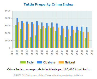 by 60.14% and the city property crime rate in Tuttle was lower than the