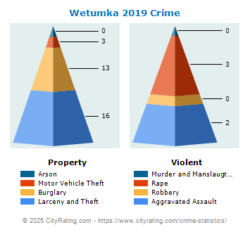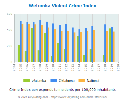 The city violent crime rate for Wetumka in 2019 was higher than the