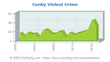 In 2019 the city violent crime rate in Canby was lower than the