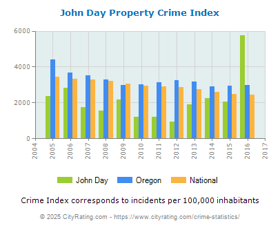 average by 39.57% and the city property crime rate in John Day was higher than the