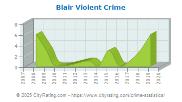 The city violent crime rate for Blair Township in 2019 was lower than the