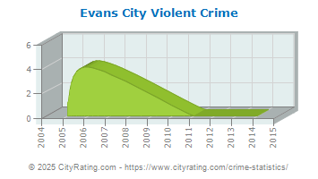 Evans City crime statistics report an overall downward trend in crime based on data from 5 years with violent crime decreasing and property crime decreasing. Based on this trend, the crime rate in Evans City for 2025 is expected to be lower than in 2014.