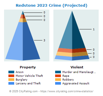 crime rate data displayed above was generated from the trends and crime data available from previous years of actual reported data. In this case, the Redstone Township crime report data for 2025 was projected from 9 years of actual data. The last year of actual available crime data, as reported above, was 2018.