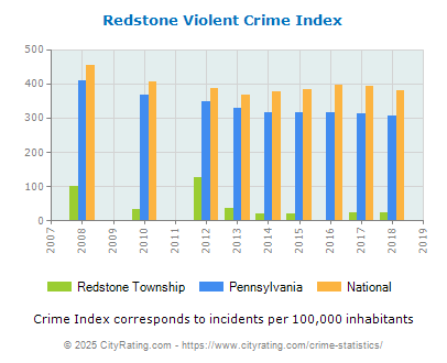 The city violent crime rate for Redstone Township in 2018 was lower than the