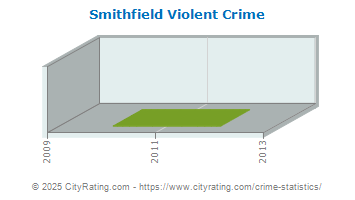The city violent crime rate for Smithfield in 2012 was lower than the national violent crime rate average by 100% and the city property crime rate in Smithfield was lower than the national property crime rate average by 100%.