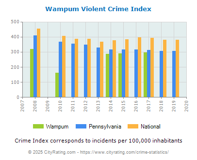 In 2019 the city violent crime rate in Wampum was lower than the