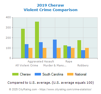 In 2019 the city violent crime rate in Cheraw was higher than the