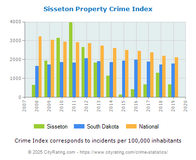 average by 67.37% and the city property crime rate in Sisseton was lower than the