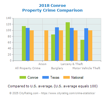 average by 34.27% and the city property crime rate in Conroe was higher than the