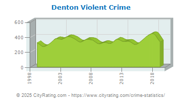 Denton crime statistics report an overall downward trend in crime based on data from 21 years with violent crime increasing and property crime decreasing. Based on this trend, the crime rate in Denton for 2025 is expected to be lower than in 2019.