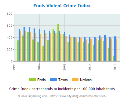 The city violent crime rate for Ennis in 2019 was lower than the