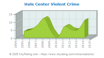 In 2014 the city violent crime rate in Hale Center was higher than the