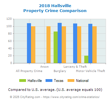 average by 63.71% and the city property crime rate in Hallsville was lower than the