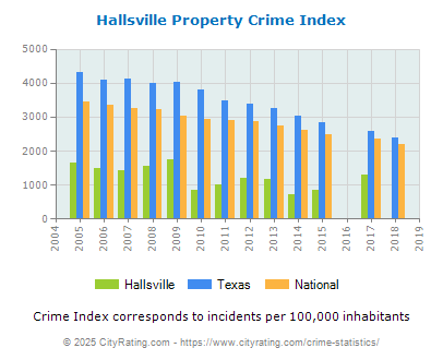 by 66.38% and the city property crime rate in Hallsville was lower than the