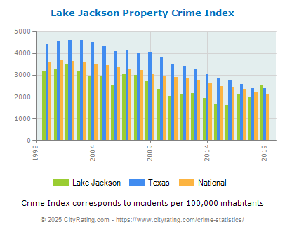 average by 45.62% and the city property crime rate in Lake Jackson was higher than the