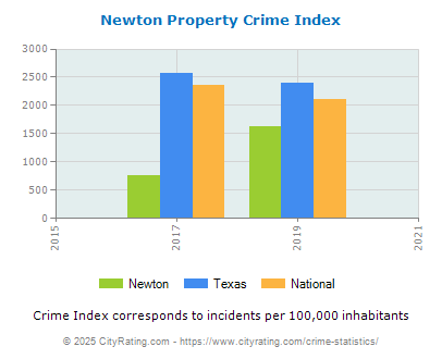 average by 32.59% and the city property crime rate in Newton was lower than the