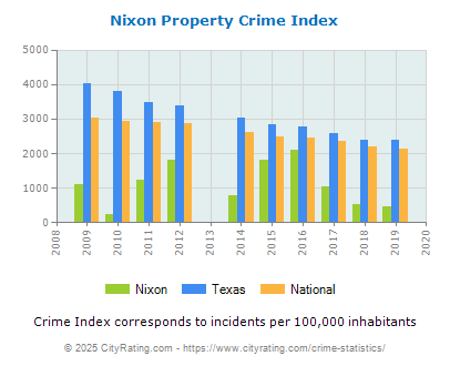 by 42.3% and the city property crime rate in Nixon was lower than the