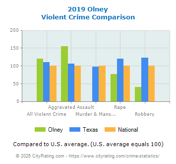 average by 19.37% and the city property crime rate in Olney was lower than the