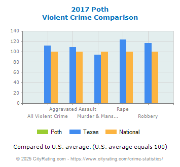 In 2017 the city violent crime rate in Poth was lower than the
