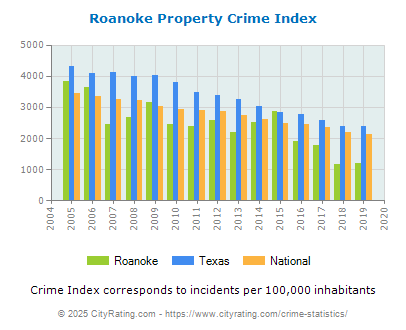The city violent crime rate for Roanoke in 2019 was lower than the