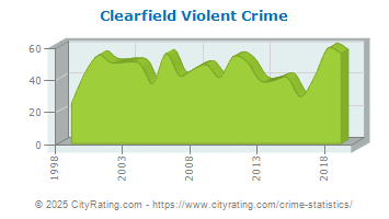In 2019 the city violent crime rate in Clearfield was lower than the