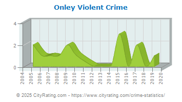 In 2019 the city violent crime rate in Onley was lower than the
