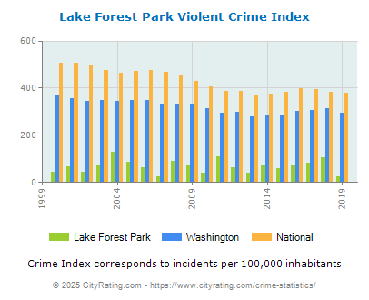 In 2019 the city violent crime rate in Lake Forest Park was lower than the