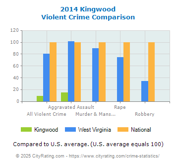 In 2014 the city violent crime rate in Kingwood was lower than the