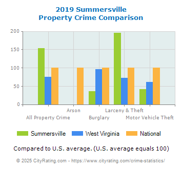 average by 91.99% and the city property crime rate in Summersville was higher than the