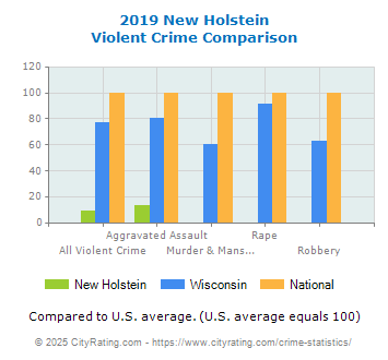 In 2019 the city violent crime rate in New Holstein was lower than the