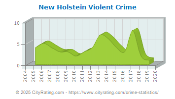 The city violent crime rate for New Holstein in 2019 was lower than the