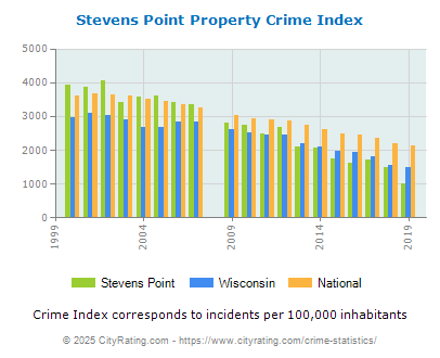 average by 44.45% and the city property crime rate in Stevens Point was lower than the